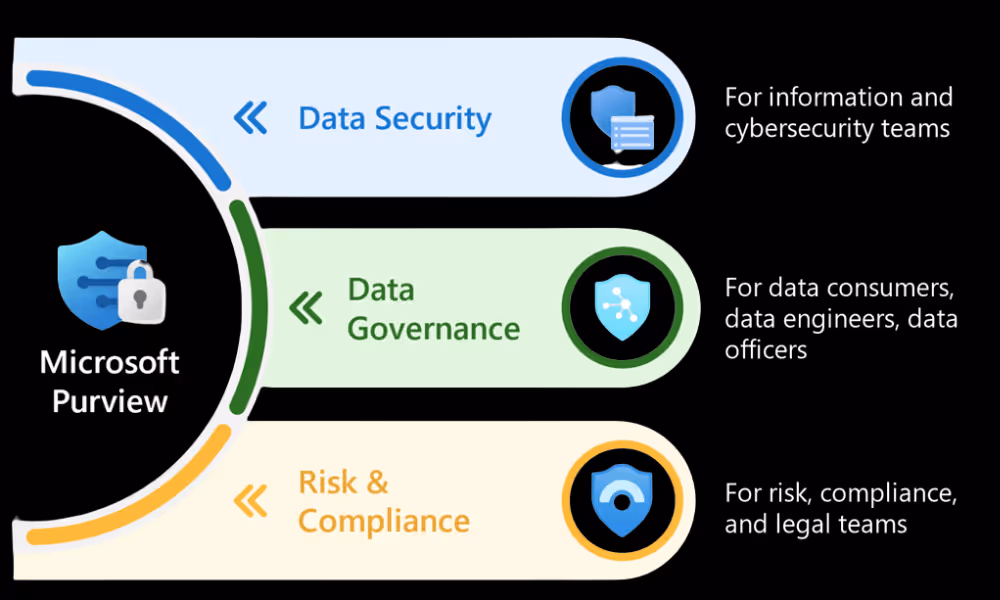 2. Protect information with policies: Once data is classified, Purview enables you to apply protection controls. Information Protection in Purview uses sensitivity labels and encryption to safeguard files and emails. Data Loss Prevention (DLP) policies then ensure that sensitive data doesn’t slip through the cracks – stopping users from mistakenly sharing confidential files via email, chat, or even printing or copying them to insecure locations.